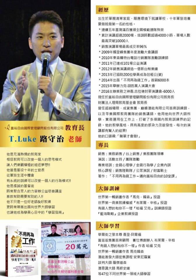 • 世界大師企管顧問公司創辦人