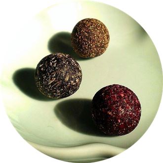 完成的香丸,隨著溫度,不經意的散發香味,