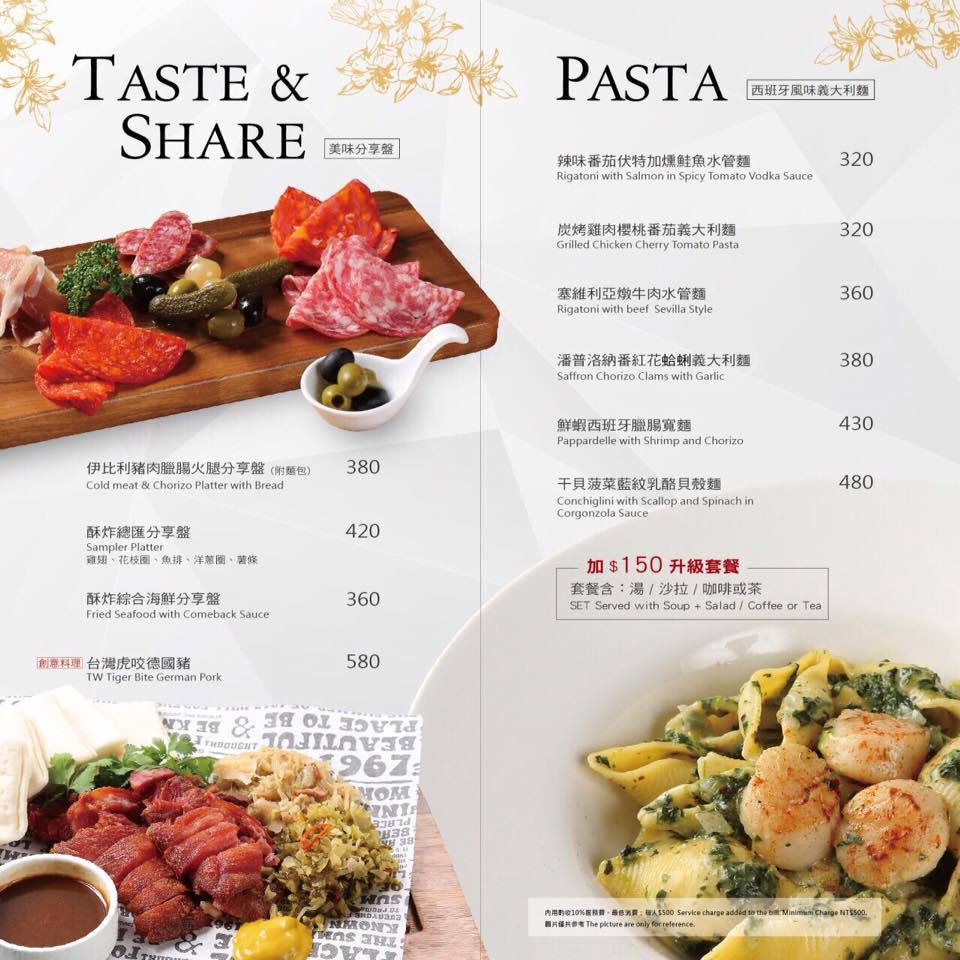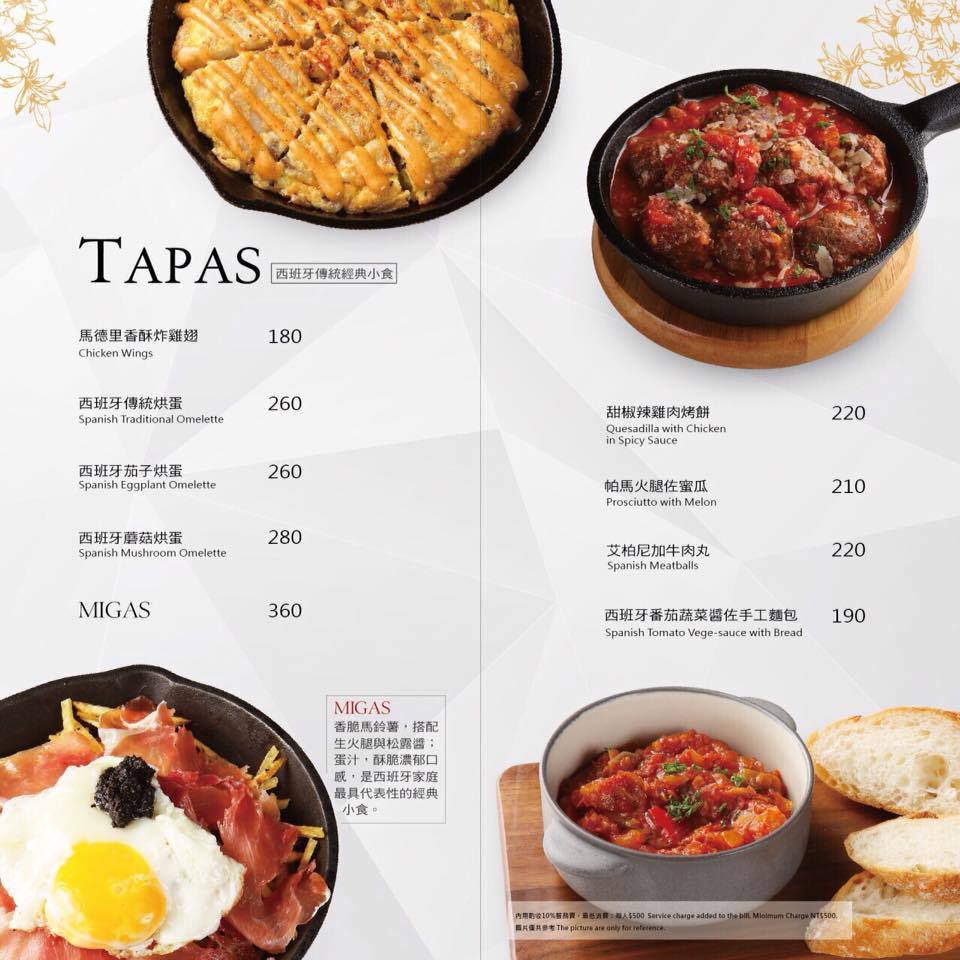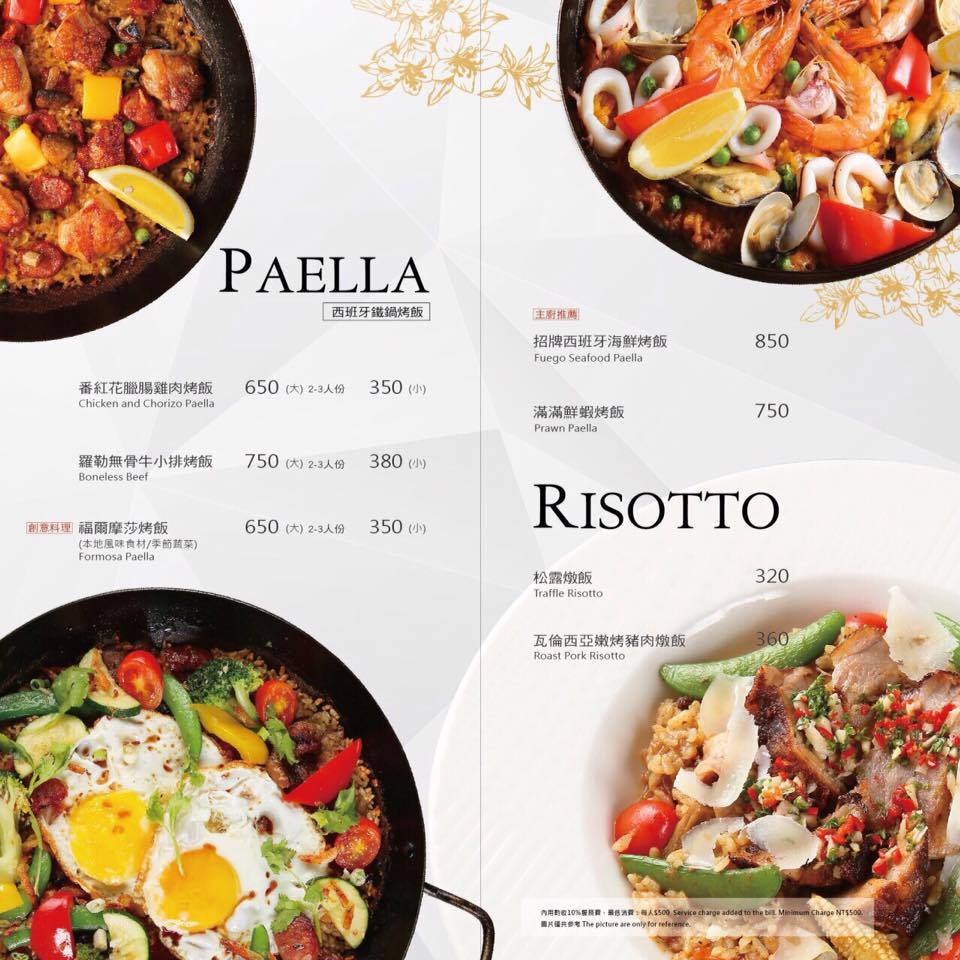 西班牙烘蛋($260)、伏特加燻鮭魚水管麵($320)、西班牙鐵鍋烤飯($350)、松露燉飯($320)...等你來享用!