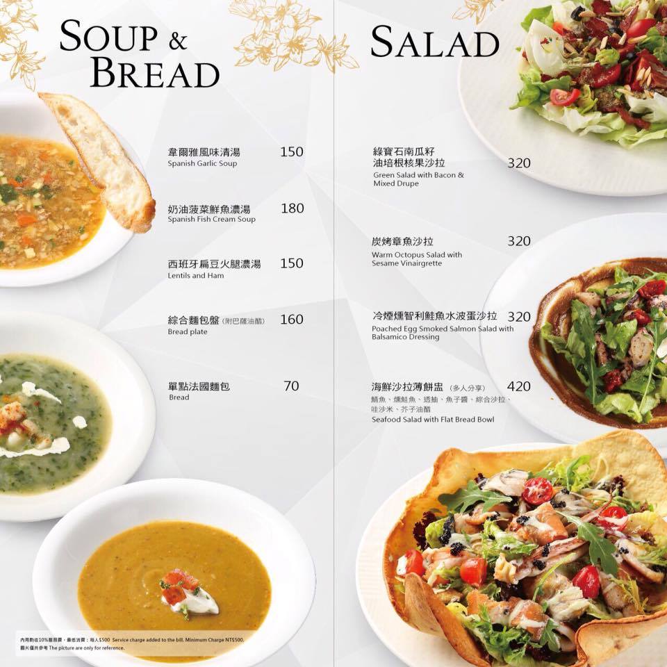 餐廳同時有西班牙風味料理、精選酒精、非酒精飲料、點心供您點用