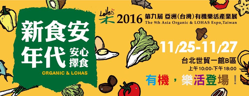 台灣有機消費者協會 在今年11/25-11/27於台北世貿將舉辦第九屆「2016亞洲有機樂活產業展」,涵蓋了食、衣、住、行、育、樂各行業不同產品,除了提供優質生活用品,更重要的是藉由企業與商品的匯聚,落實產業友善地球行動,讓展覽真正做為一個交流平台,傳遞資訊給消費者,在健康、生態平衡,以及整個地球環境的永續性,讓世界都能共享有機生活的好處。