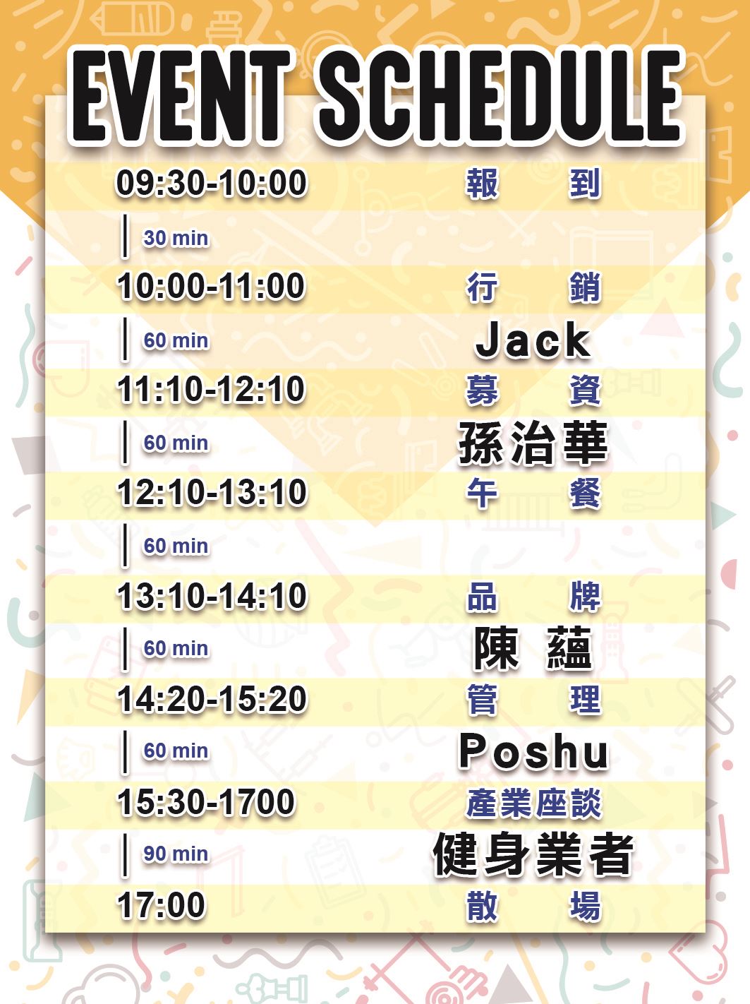 在第二屆的交流大會中,動文創很榮幸地邀請到中國OneFit創辦人陳蘊,他將與大家分享自己的創業心路歷程。同時,動文創也成功邀請到業界知名講師和企業經營者,他們將從行銷、品牌、管理和募資等方向進行分享,更深入地帶領大家進入健身領域,以及了解該如何創造和經營自我品牌。