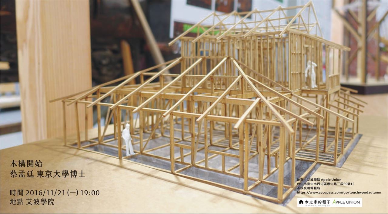 【11/21 】木構開始蔡孟廷 日本東京大學博士 台北科技大學助理教授踏入木構的第一堂課,不容錯過!想設計木構建築而不知所措嗎?老師說的話就要聽!老師告訴你如何開始木構。如何跨出第一步進入木構建築的世界。