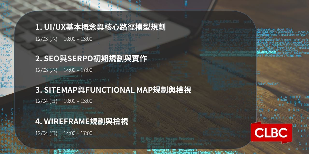 * 這是連續四堂,一個周末兩天共 12 小時的系列課程,不接受單堂報名 *