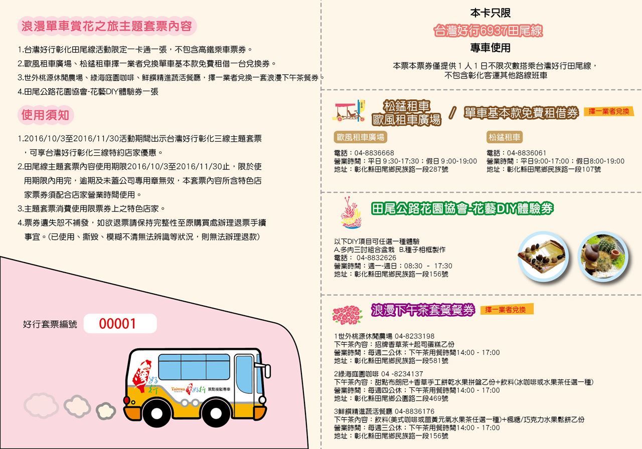 (二)台灣好行田尾線主題套票-浪漫單車賞花之旅