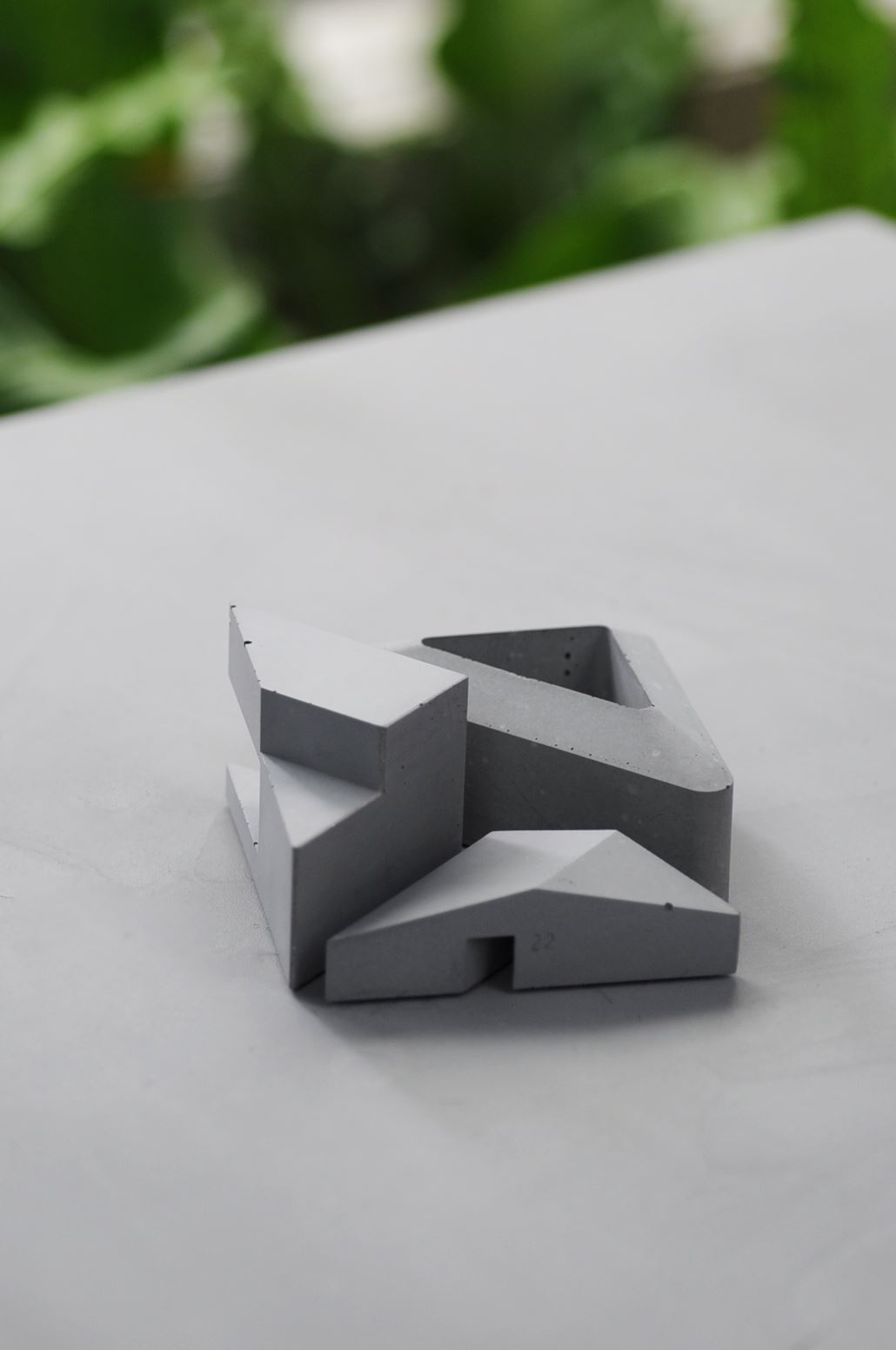 當傳統文化結合現代新設計,以「三巧版」作主要發想,結合城市輪廓,用22獨有的設計語彙,將都市中常見的建築型態重新定義,衍生出的水泥雕塑品,大至摩天大樓,小至平房等六種都會代表性建築物,一系列適合居家擺飾的水泥商品,以嶄新樣貌貼近日常生活之中。