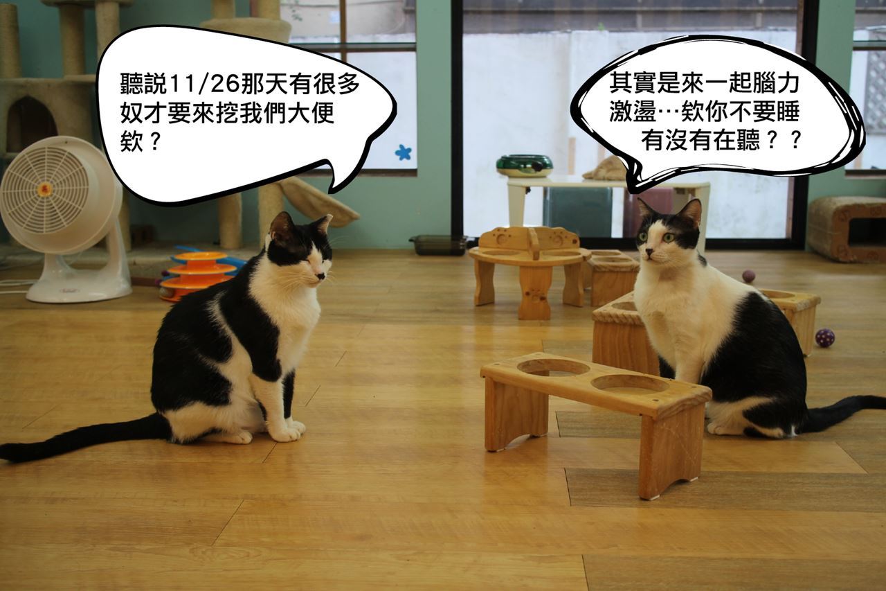 | 10:30-11:30 | 拼圖喵中途之家創辦人 —— 陳人祥分享貓便當菜創業經驗:從工程師轉行經營貓旅館、到現在的中途之家和貓堆肥菜,動機、過程;看見動保團體的困境例如:募款、經營者的動機等 |