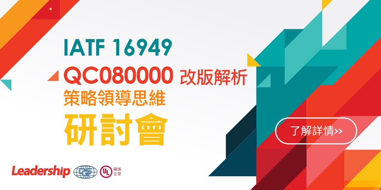 IATF 16949 & QC080000 改版解析與「策略領導思維」研討會,免費報名中:
