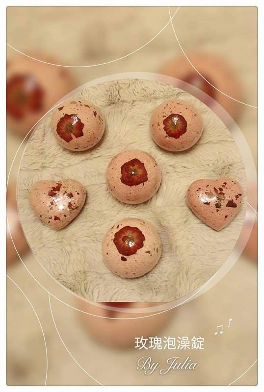 天然精油泡皂錠 :由小蘇打粉、玉米粉、檸檬酸及瀉鹽為基礎,加上植物浸泡油增加淡淡紫粉紅色,建議選擇有紓壓安眠效果的薰衣草精油或浪漫美容效果最好的玫瑰天竺葵精油。泡澡錠裡加上少許花瓣更添浪漫氣息。也可以選擇金盞花組,淡淡橘黃色澤,加上甜橙精油,泡澡更舒壓。