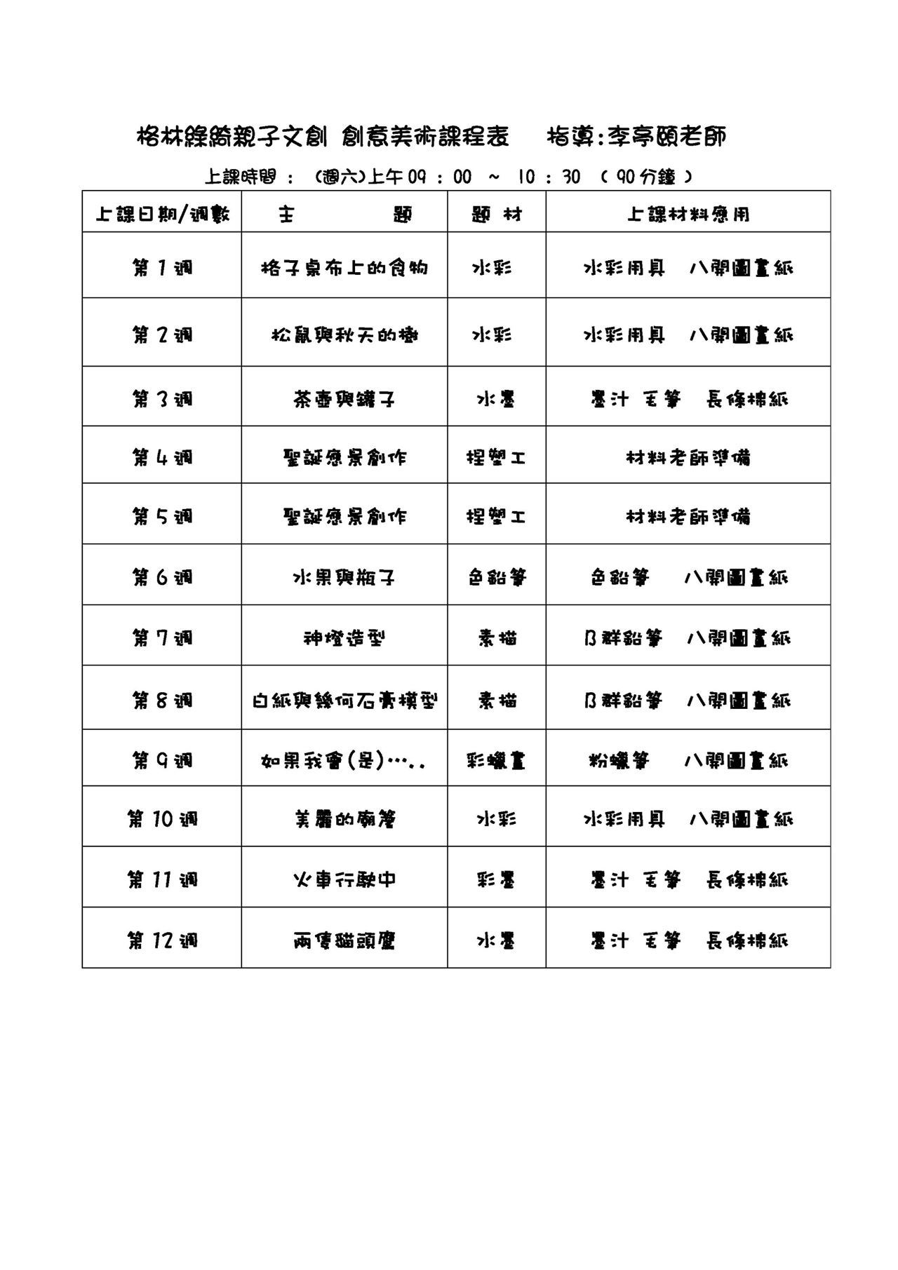 費用:350/堂,4,000/12堂(不含材料費,60元/堂)