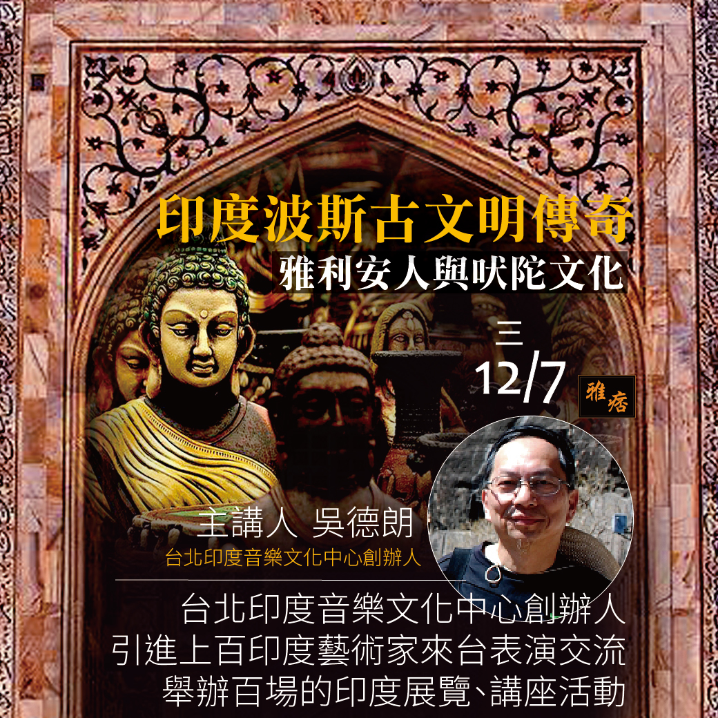 前進印度旅遊之前,讓剛從伊朗考查回國、台北印度音樂文化中心創辦人吳德朗,將他”豐富的知識及第一手的伊朗影像,從印度看伊朗,帶我們深入印度與波斯的神祕文化世界!