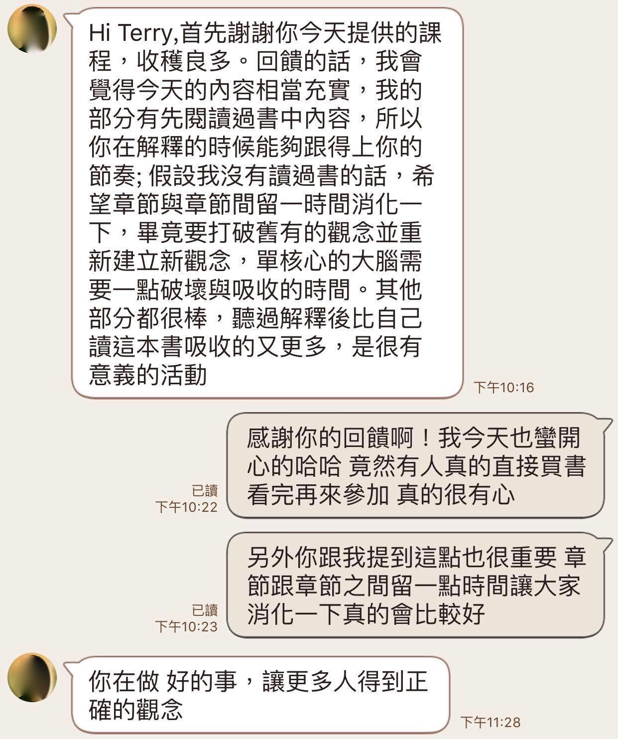 2.有看過書的朋友自然最好,沒有看過書的朋友也不用擔心,將會進行書籍導讀,一樣能學習到噢!