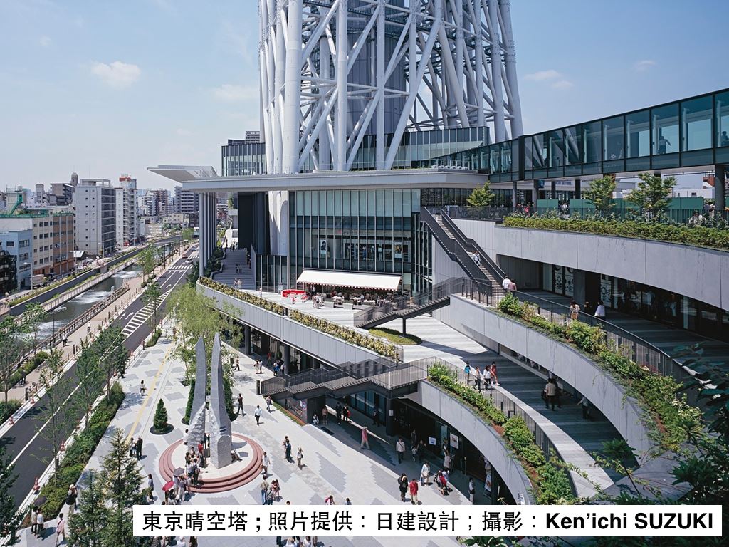 東京晴空塔位於東京都區部23區的墨田區,往西即是我們熟知的繁榮地區如新宿、澀谷、品川等,而其再往東就是偏遠的郊區。而晴空塔的興建目的,除取代因高度不夠的東京鐵塔,扮演數位無線電視的訊號發射站之外,同時具有振興在地經濟、社區營造的企圖,試圖將西部的繁榮景象延伸至東部。晴空塔不負眾望,自設計興建開始就引起日本民眾注目,於2012年中正式啟用後,更成為訪日觀光客必到的景點,成為東京都區新一代地標建築。