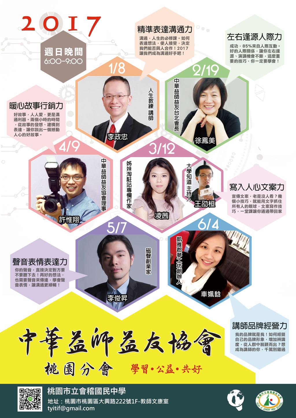 2、17:30~18:00為桃園益師益友例會報到時間,18:00課程正式開始,敬請準時入場。