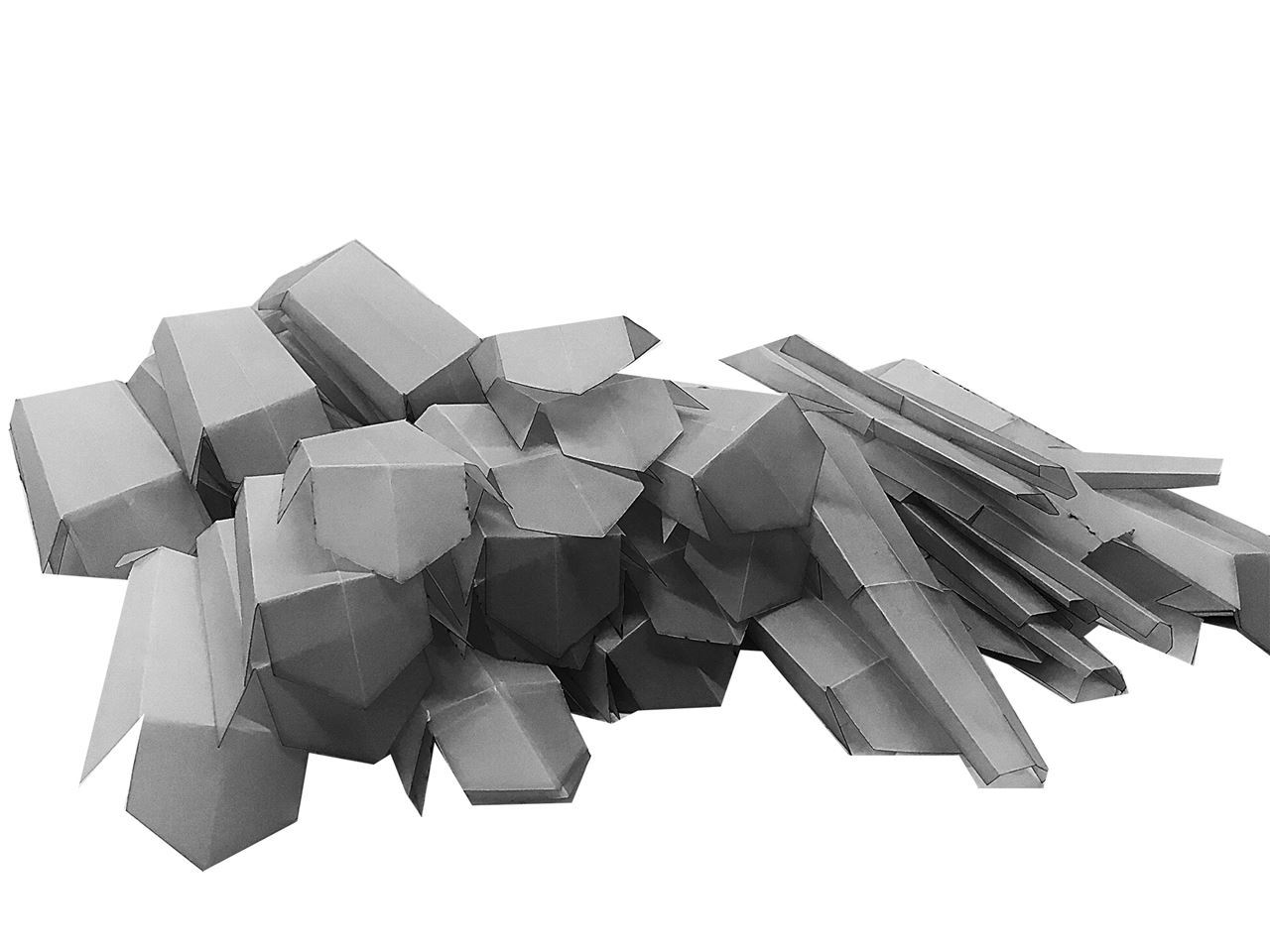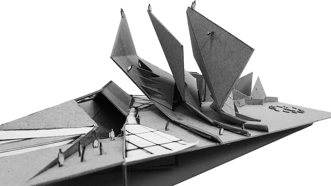 摺疊是一種非線性的建築設計方法,它強調變形和差異,更強調承接與連續。透過摺疊,能使傳統的牆、板、地被連接起來,形成了統一的整體,模糊了建築形式、空間的內外與高低分層的界線。由一張紙的正反兩面開始,運用切割、摺疊與展開為主要生成機制,建構出摺疊設計方法,探究並創造出空間與形式本身的連續與多樣性。