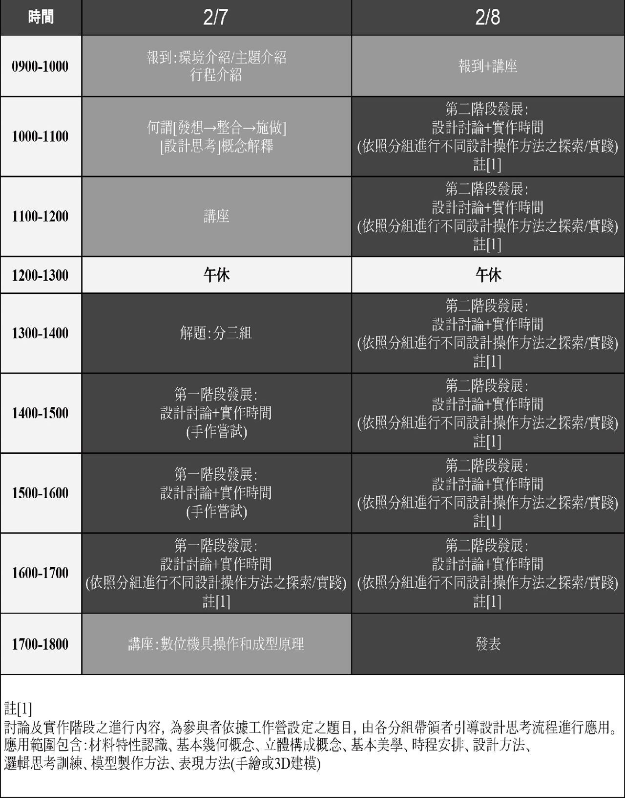 2.課程中之討論與實作部分將採三組制,依設計方法進行區分。