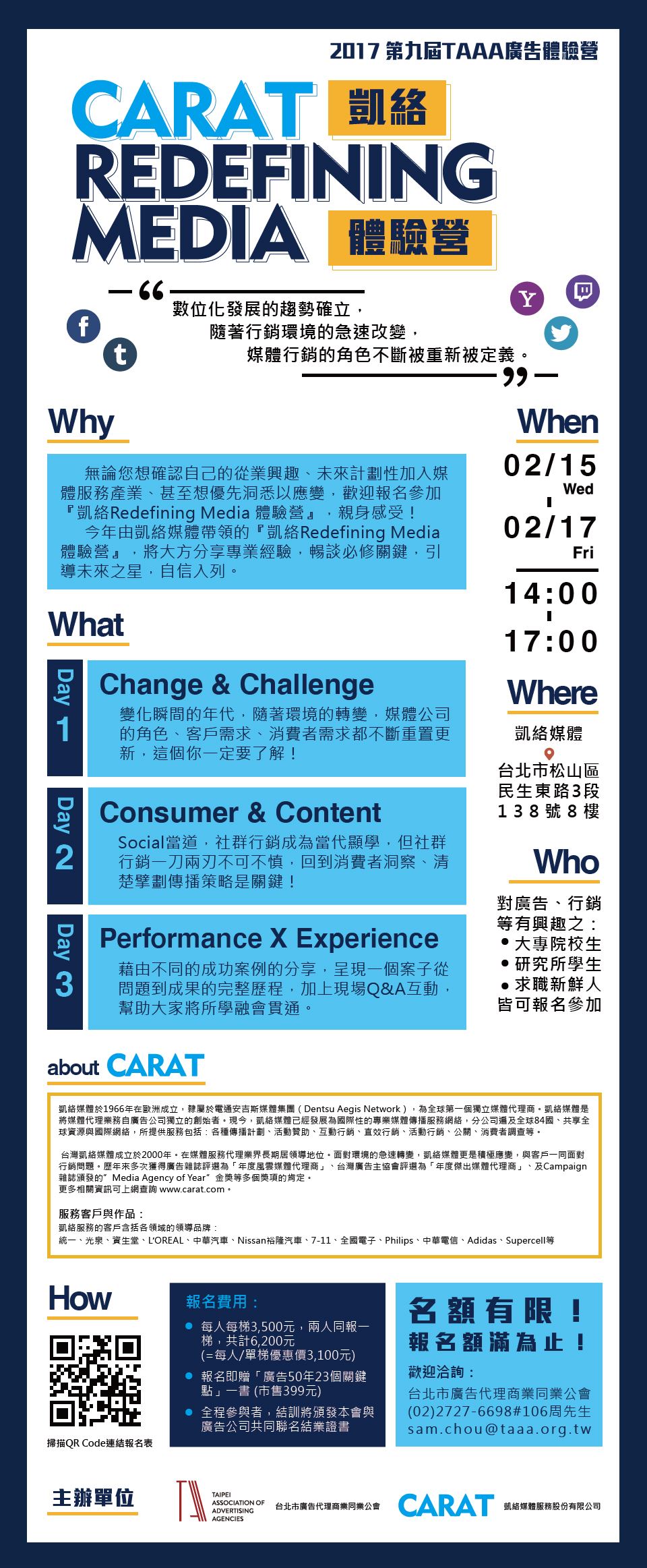 ※營隊採小班制進行,全程於凱絡媒體內部授課。名額有限,額滿即截止報名。