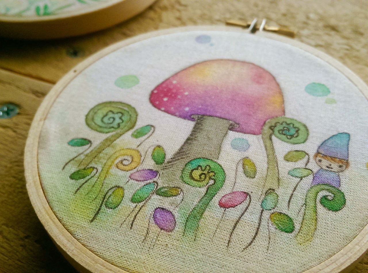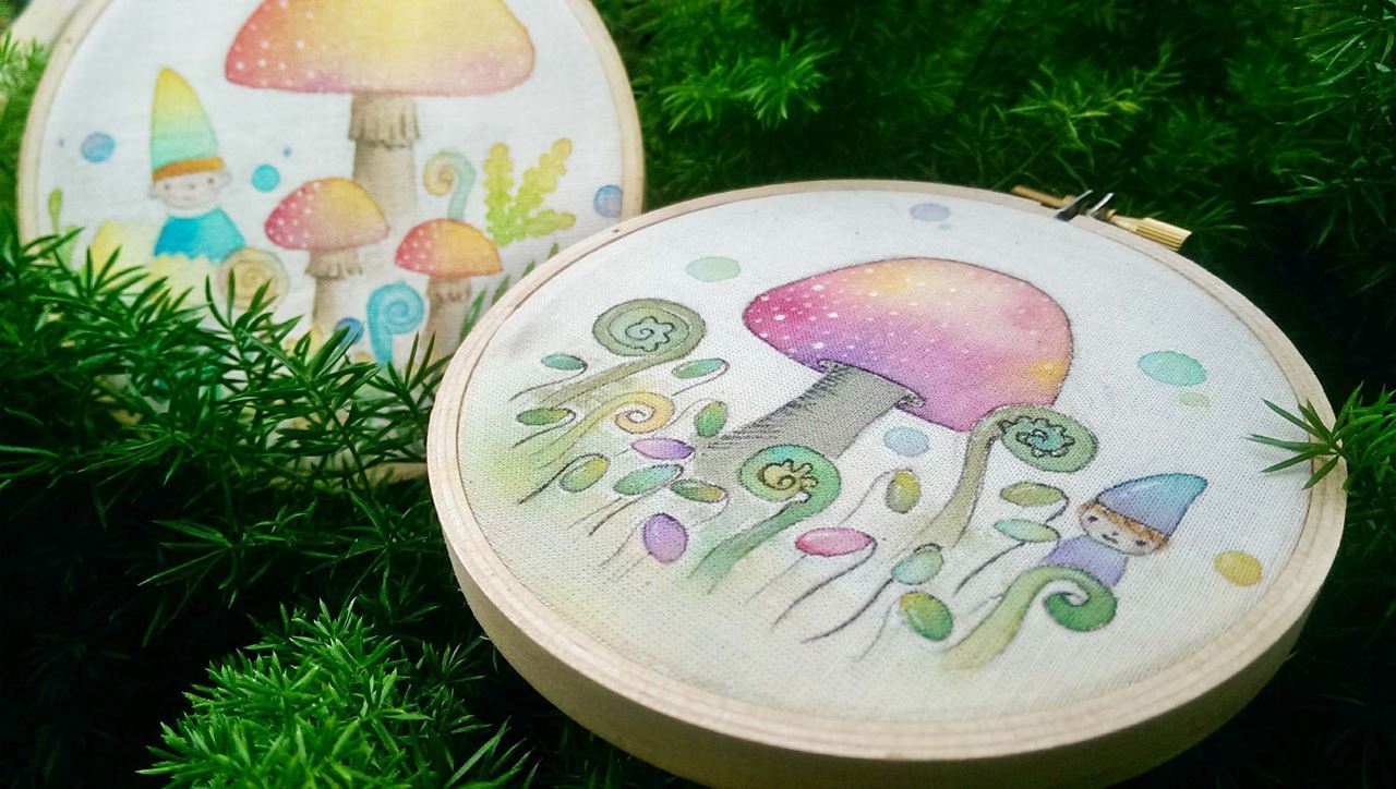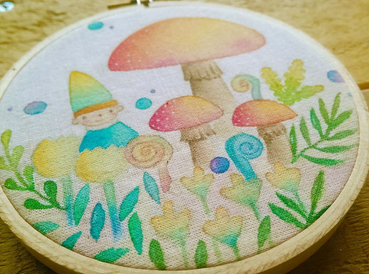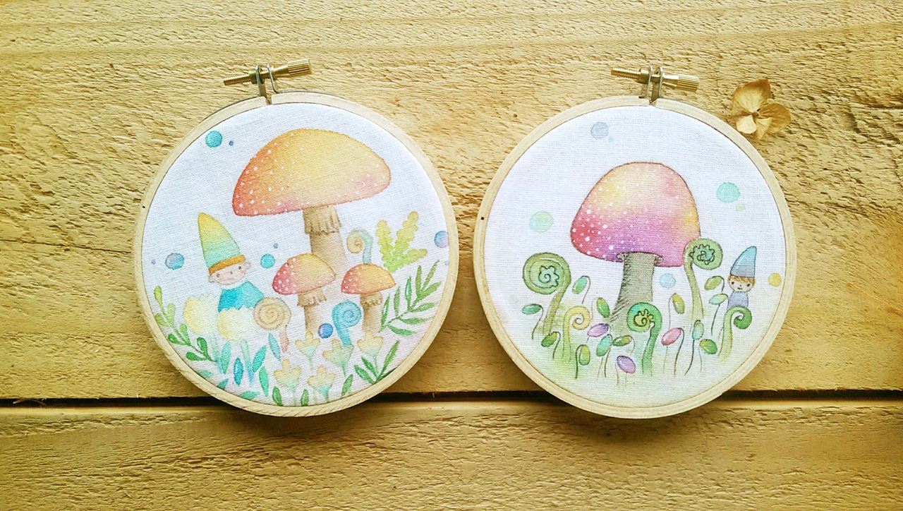 透過胚布吸水易染的特性,渲染出朵朵綺麗蘑菇