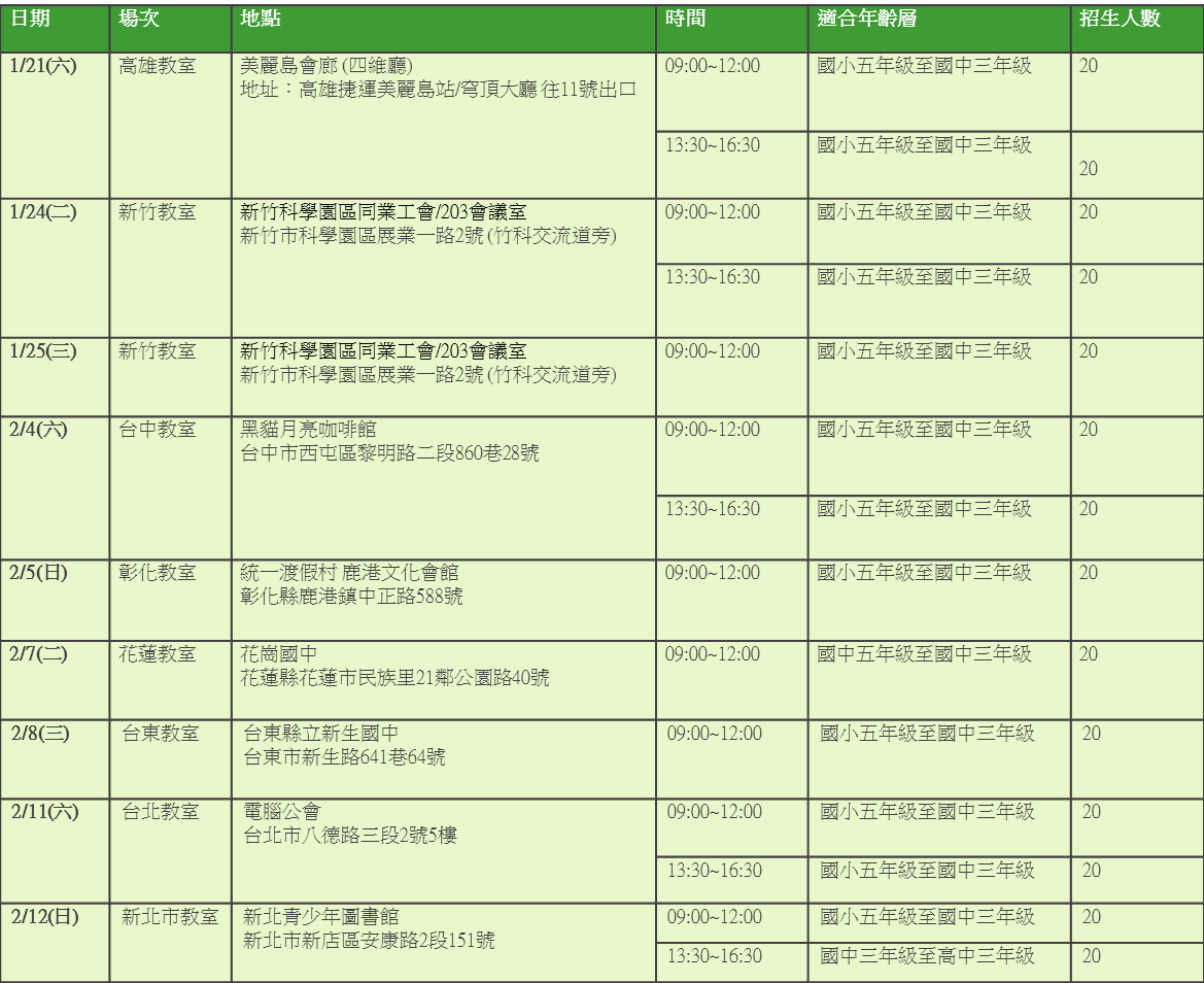 參加年齡:國小五年級至國中三年級 ( 2/12 上午9:00~12:00 )