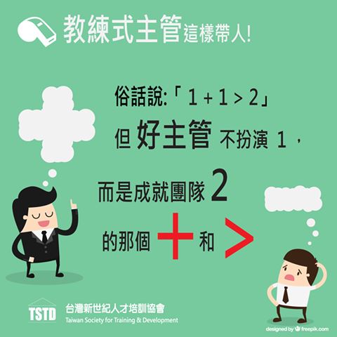 台灣新世紀人才培訓協會(TSTD)致力教育培訓非常多年,這幾年透過協助政府「小型企業人力資源提升計畫」服務過非常多台灣民間中小企業完成培訓,因此深刻了解主管帶人的困境與需求;而2017年我們與國際教練聯盟台灣總會(ICFT)特別聯合企劃「主管當教練」講座,希望藉由這次活動讓所有企業領導人,有機會搶先體驗其系統化的領導激勵技巧,藉由應用教練模式把現在的自己提升到更優秀的自己 !