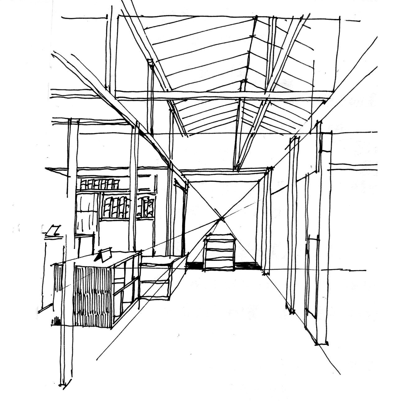 -透過一個室內空間如臥室、店鋪來了解範圍較大的透視。