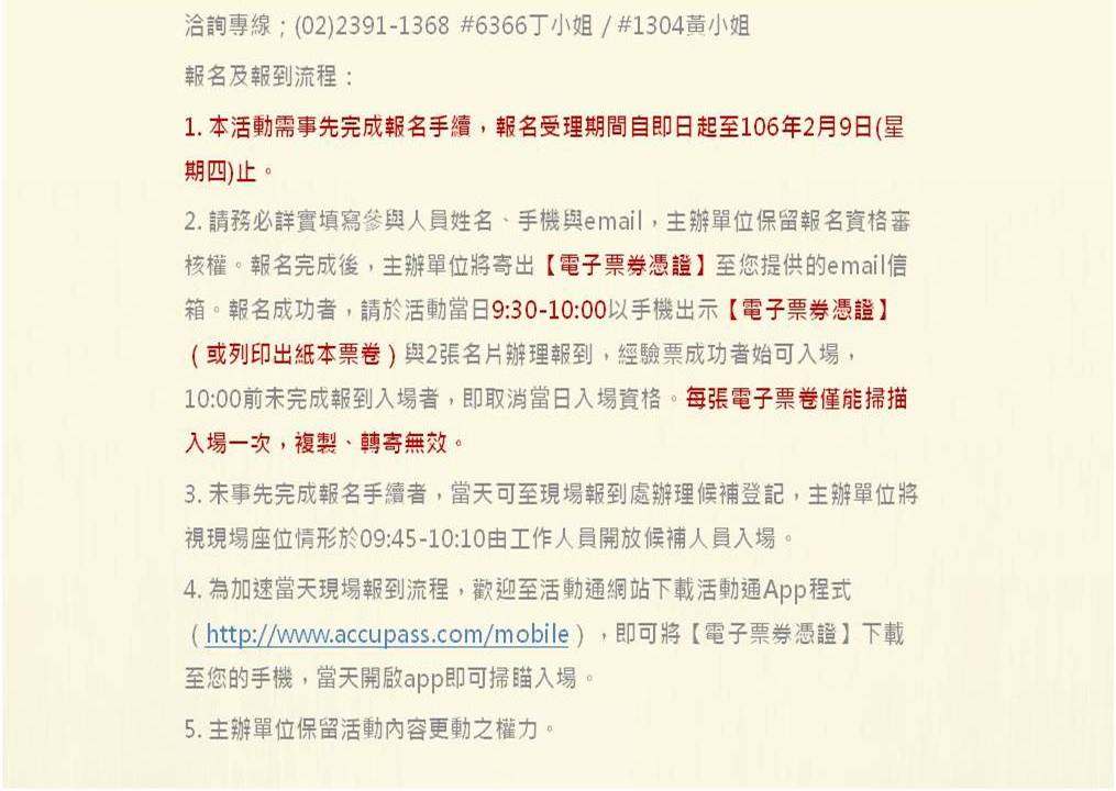 報名完成後出示 ACCUPASS App 中的票券即可快速入場。