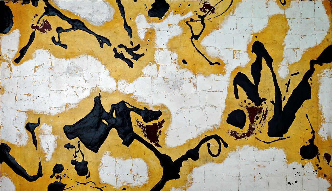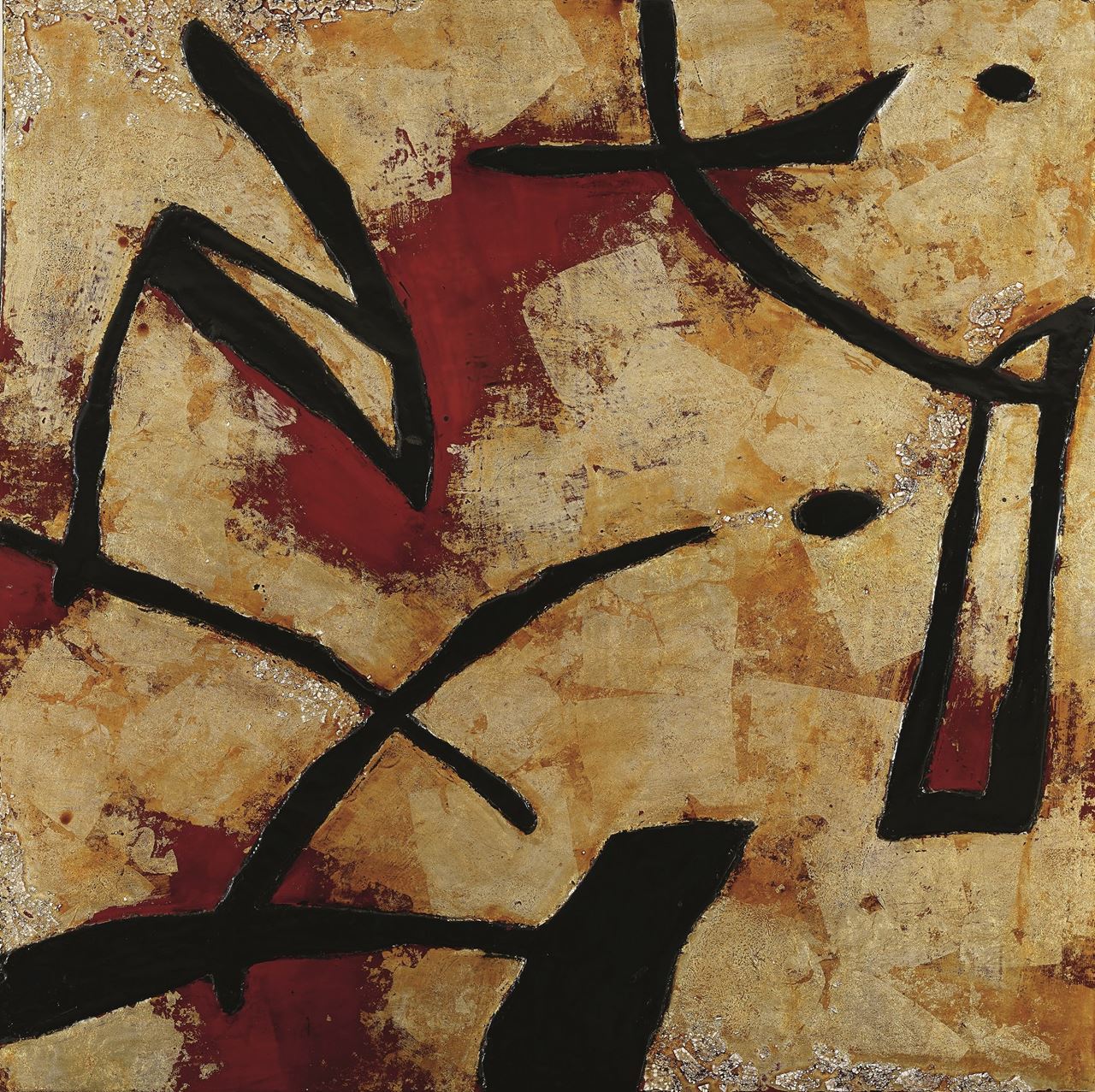 汪天亮 金色的律動 100x100cm 漆、綜合媒材 2016
