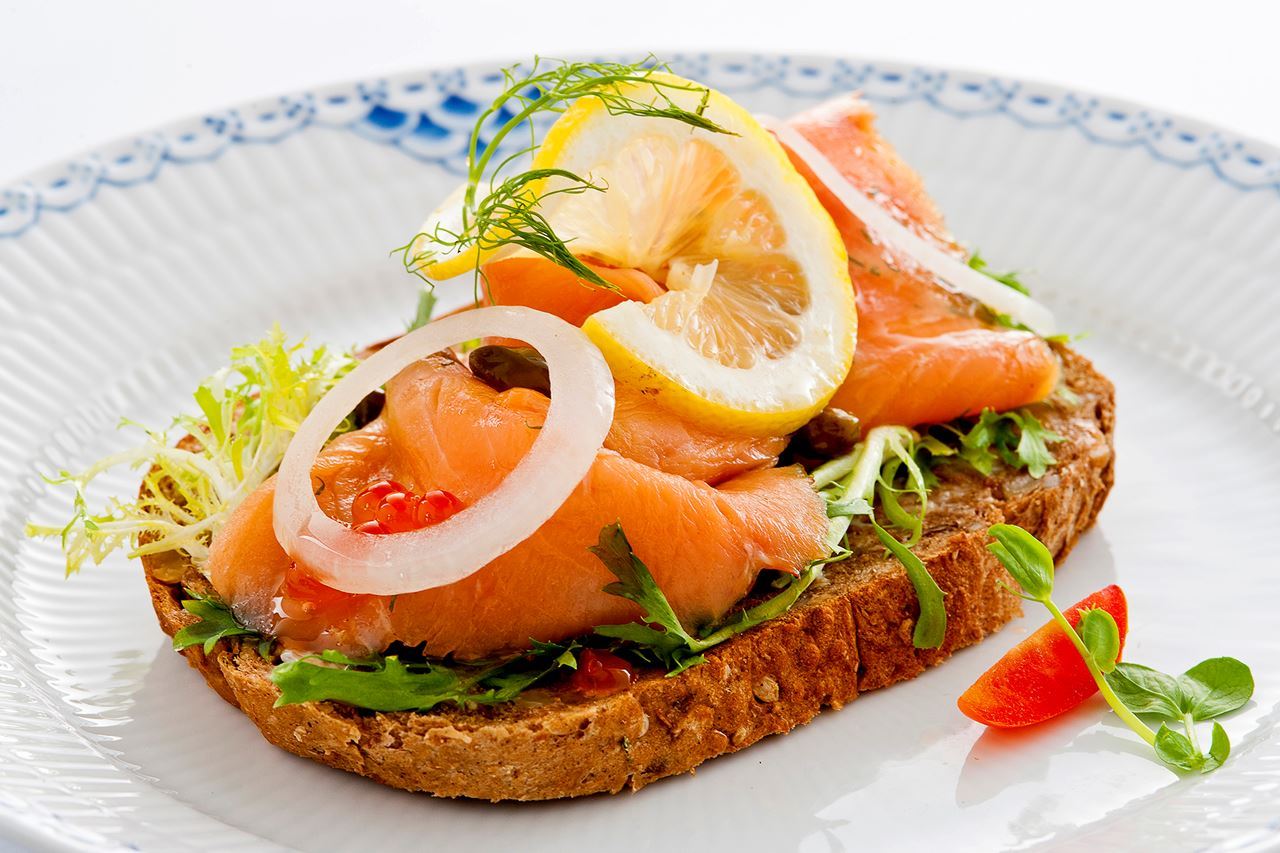 丹麥經典開口燻鮭魚奶油、丹麥新年米布丁、套餐飲品