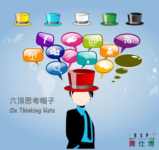 針對這樣思緒混亂、意見分歧又欠缺周延的情況,狄波諾提出的「六頂思考帽」(Six