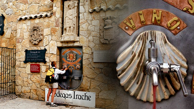 朝聖路上絕不能錯過的酒泉,看到人多熱鬧的地方就是了。兩個水龍頭,一邊是水,一邊是紅酒,當地酒廠每日準備一桶紅酒提供路過的朝聖者免費裝盛飲用,因為限量,只有早上經過的人才能喝到。
