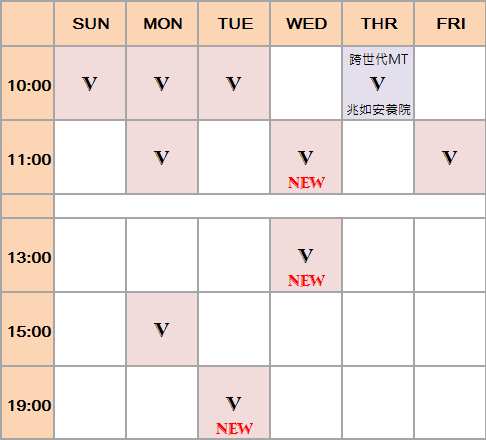 春季正式活動課表(春季班正式開課日期:4/9當週)