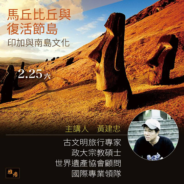 世界遺產協會顧問暨專業領隊黃建忠,此次將在雅痞帶領你認識在深山的印加古城和擁有海洋文化的復活節島,他們神秘和令人著迷之處!