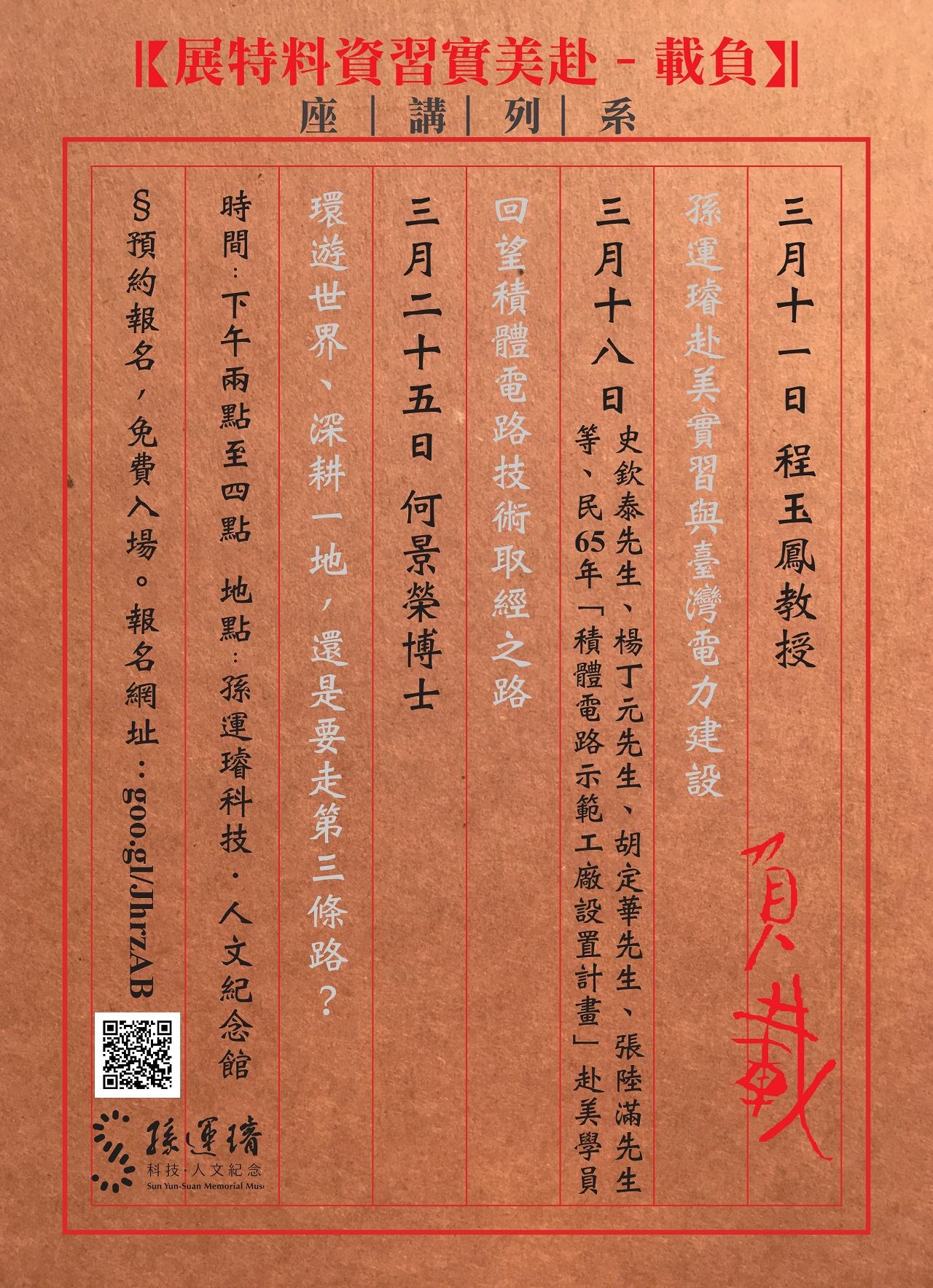 孫運璿先生對臺灣經濟發展的重要貢獻就是電力建設,而他當年之所以能來臺灣參加電力重建,是因為他曾經赴美國實習兩年,學習電力方面的新知識和新技術,並獲得相關的實際經驗,這些都在戰後直接運用到臺灣的電力建設,而後20年他全力投入,展現出亮眼的成果。所以赴美實習對於孫先生而言,可說是他一生中重要的轉捩點,對他個人和臺灣都具有重大意義。這段少為人知的精彩歷程,將由程玉鳳教授為您詳細娓娓道來。
