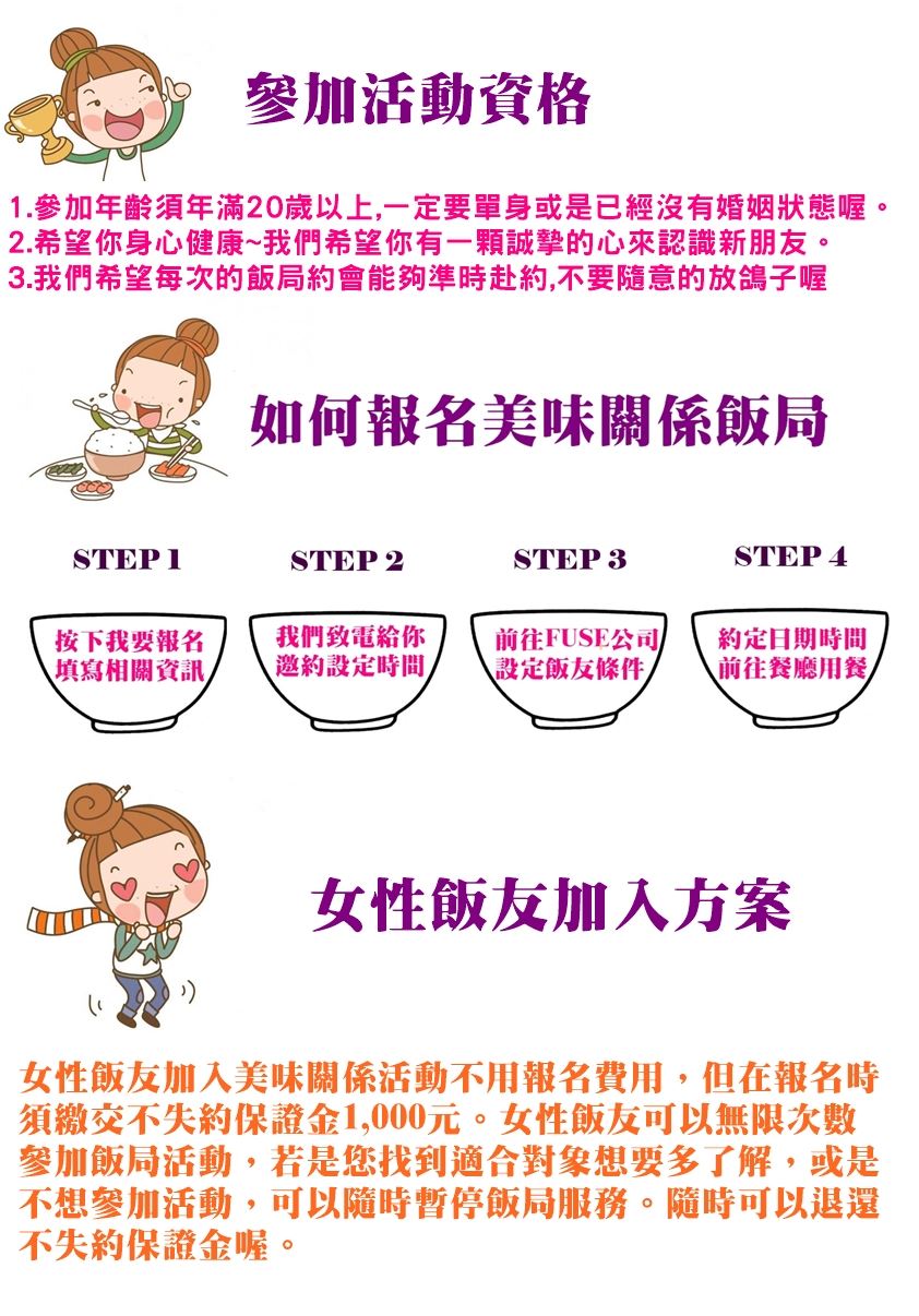 屬於女性的三月,在各個工作領域的女孩兒們,為了犒賞辛苦又單身的妳們,FUSE的合作餐廳【酒窖子Wine Bar】特別要贊助女孩兒,凡在活動期間參加及報名成功FUSE的美味關係活動,【酒窖子Wine Bar】餐廳免費全額贊助你們乙場飯局餐費,讓大家享用美食之餘也可以認識新朋友,拓展女孩兒們的生活圈。