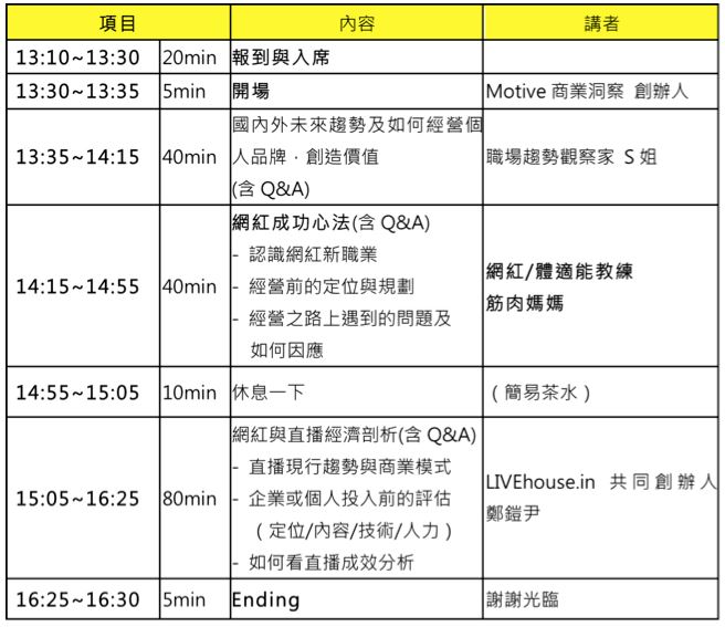 3/11【自媒體的黃金時代-網紅X直播經濟這樣玩】,由三大講者告訴你:網紅經濟與品牌直播的經營策略。