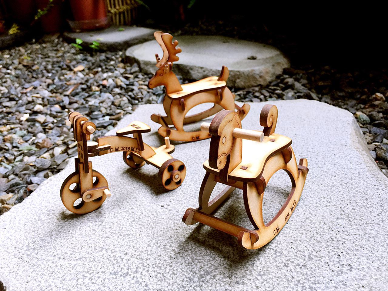 課程內容:木質搖搖木馬組合包或童趣三輪車或麋鹿組合包)乙份,