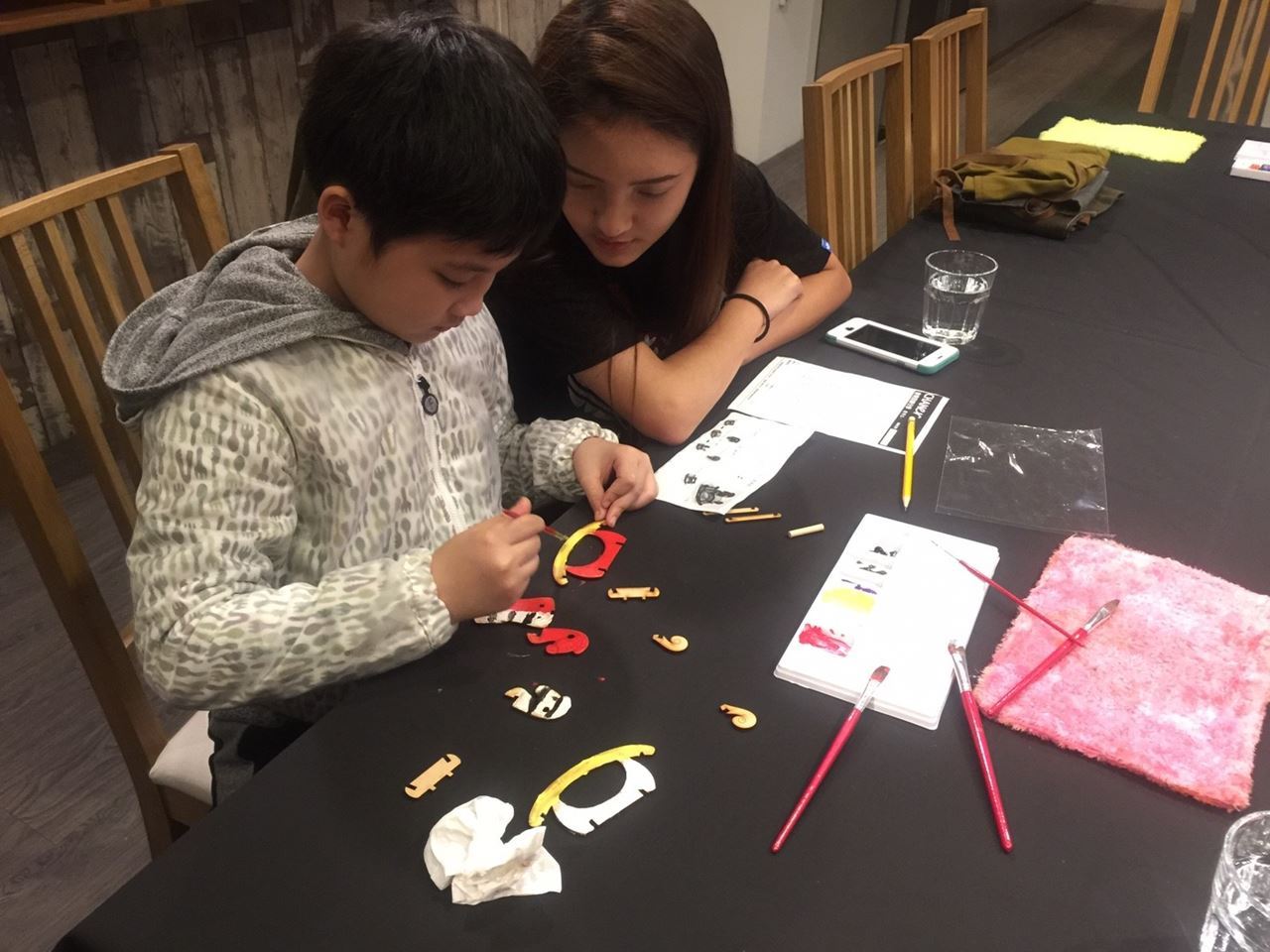 現場提供畫筆顏料,並由金昌廷 老師親自教學示範,帶小朋友一起體驗。