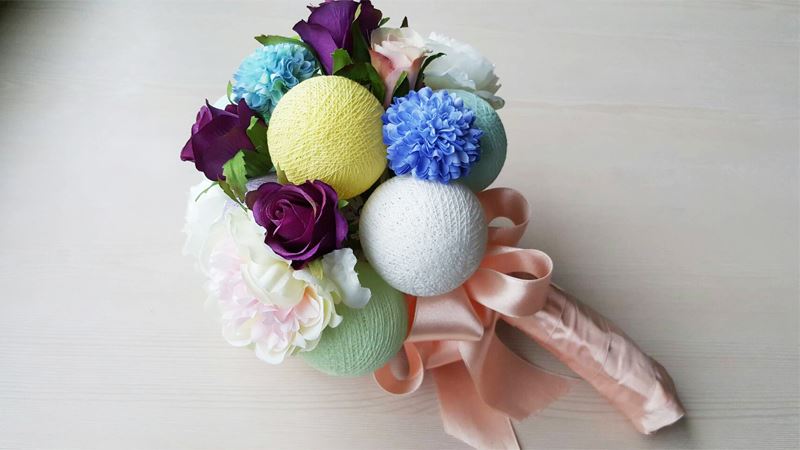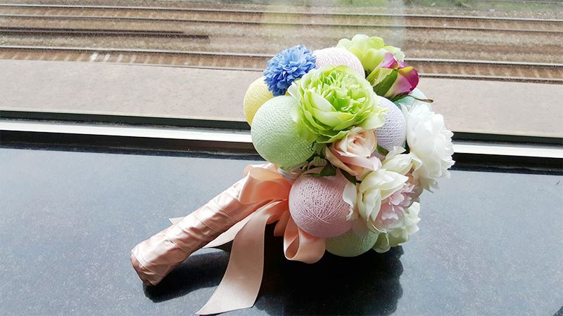 棉燈人造花捧花一束,並學習到配色搭配和捧花製作的方式。
