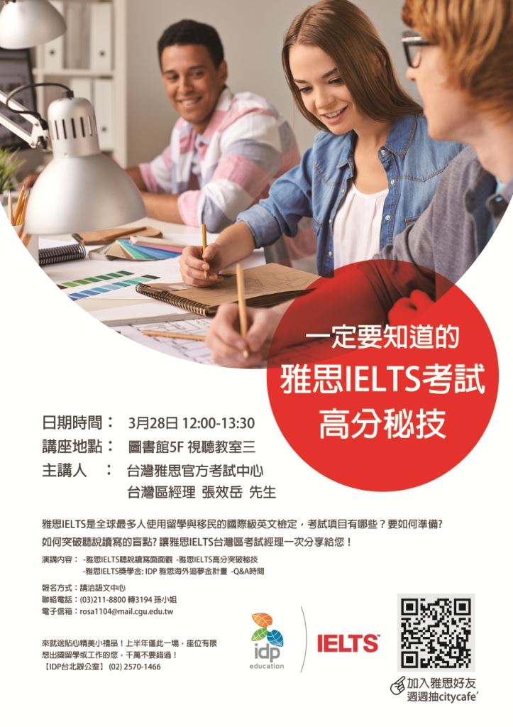 > 請先與長庚大學語言中心預約 聯絡電話:(03)211-8800 轉3194 孫小姐 電子信箱:rosa1104@mail.cgu.edu.tw
