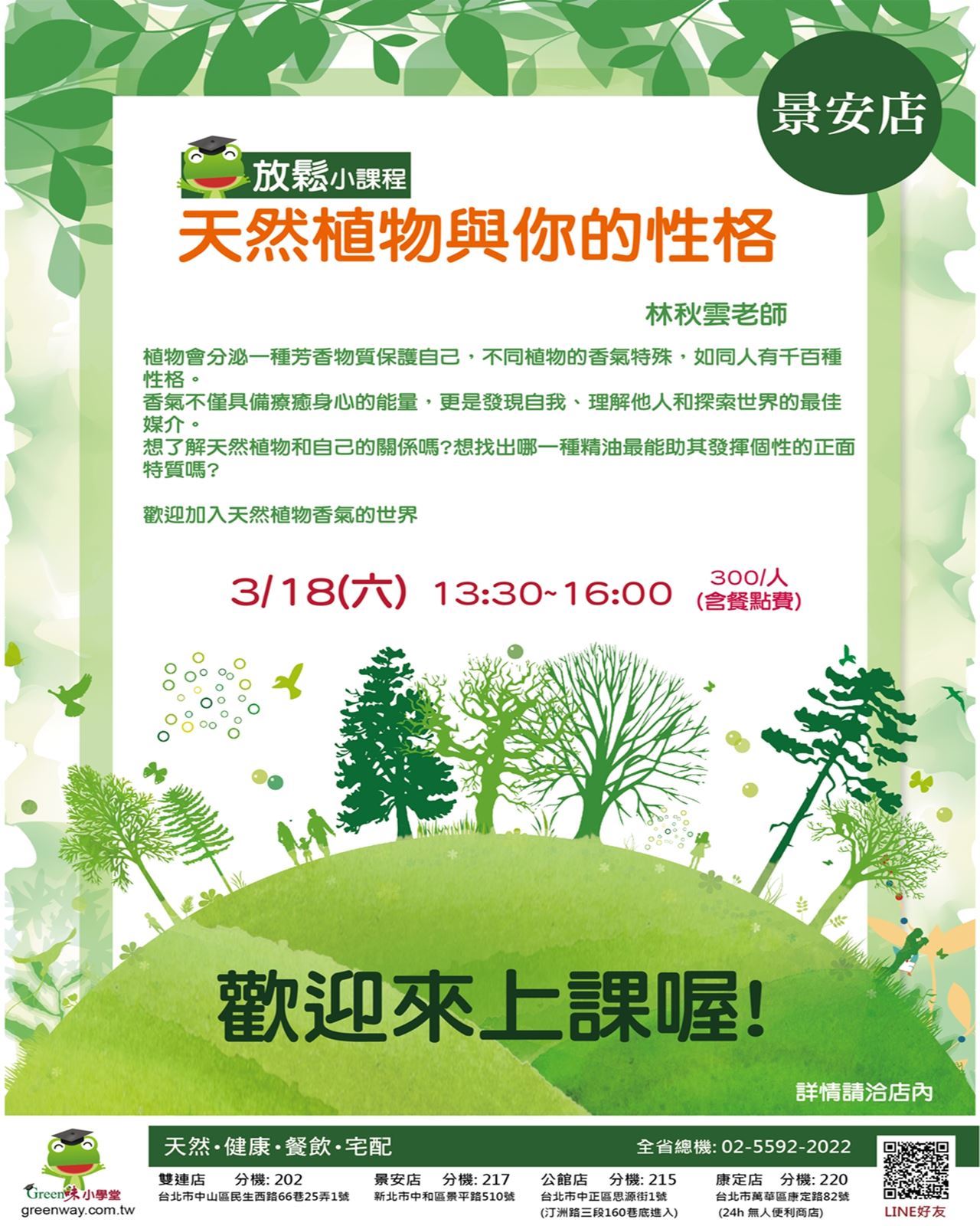 3/18(六)13:30-16:00 300元/1人(含餐點費)