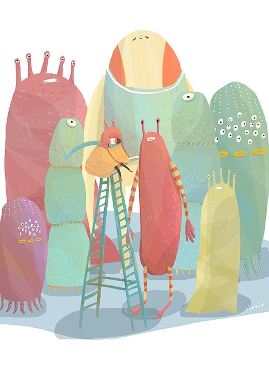 擅長運用邏輯思考以及生活觀察後凝聚的想法,再用筆下的插畫講述完整的故事。