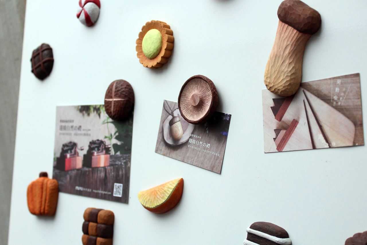 最後完成的作品加上磁鐵後,就變成獨一無二的木刻小物喔!