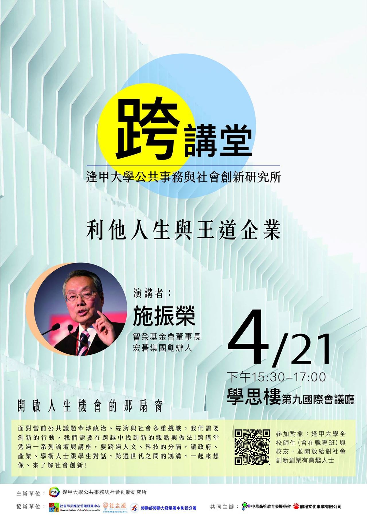 【跨講堂 】施振榮 董事長 /利他人生與王道企業 (4/21)