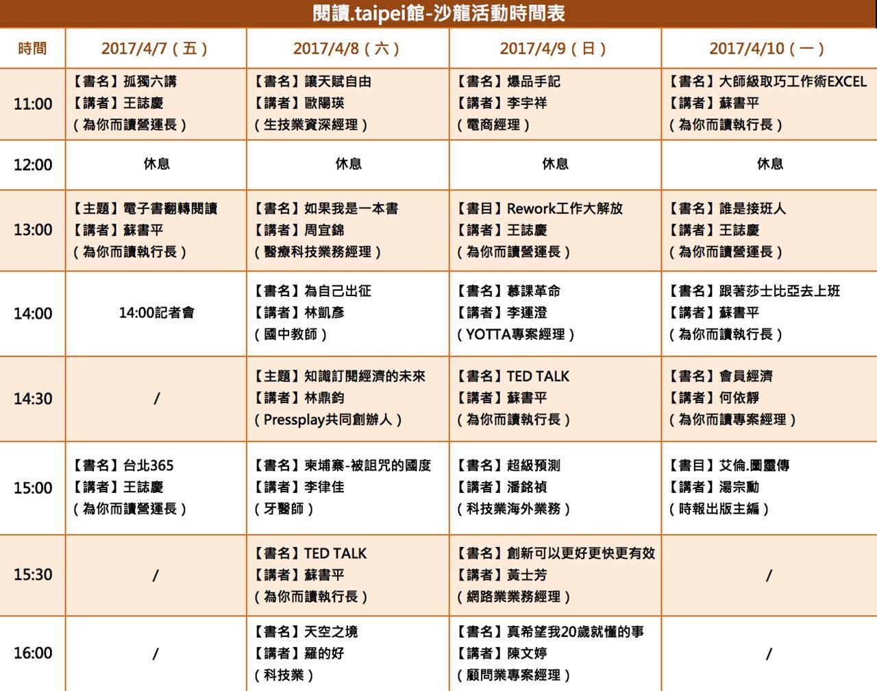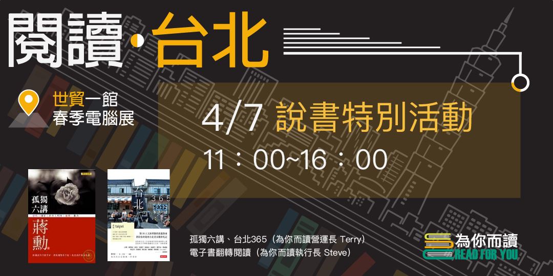 【閱讀・台北】4/7-4/10為你而讀說書特別場