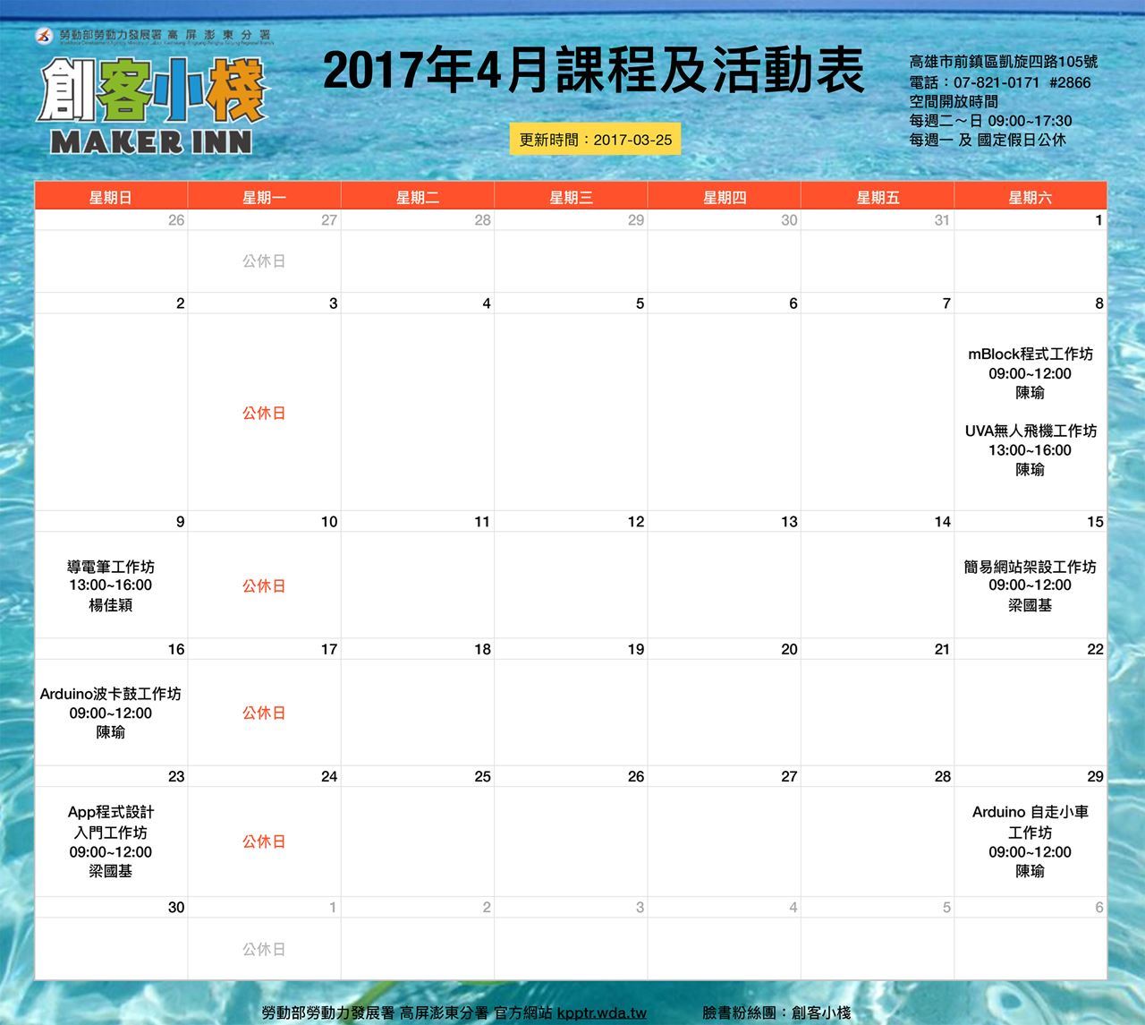 以上課程地點皆為: 勞動部勞動力發展署高屏澎東分署-創客小棧 (806高雄市前鎮區凱旋四路105號)。