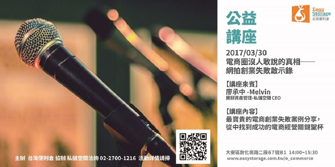 此場免費講座由私儲空間創辦人 Melvin 主講,為仿間少見的網拍電商失敗案例分享講座◦