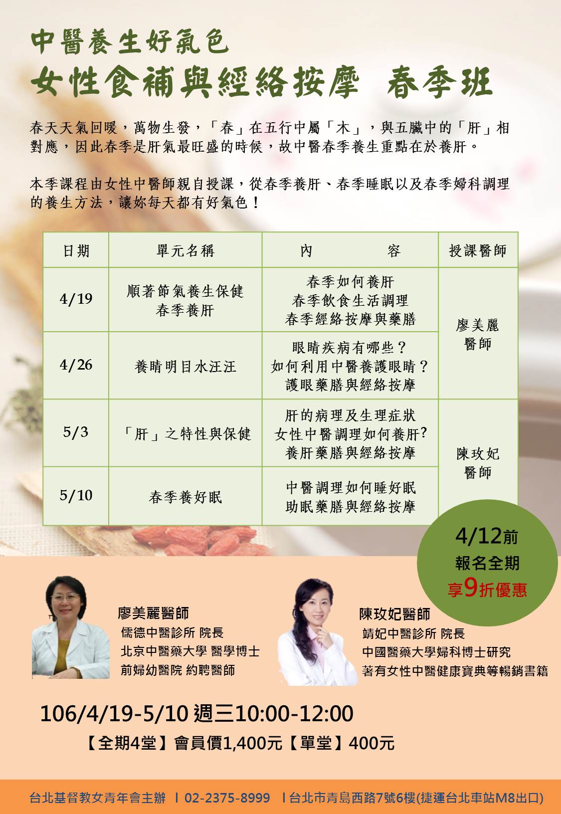 線上報名: http://www.ywca-taipei.org.tw/edu/lift108.htm台北基督教女青年會台北市中正區青島西路7號(捷運台北車站M8出口)報名專線:02-2375-8999