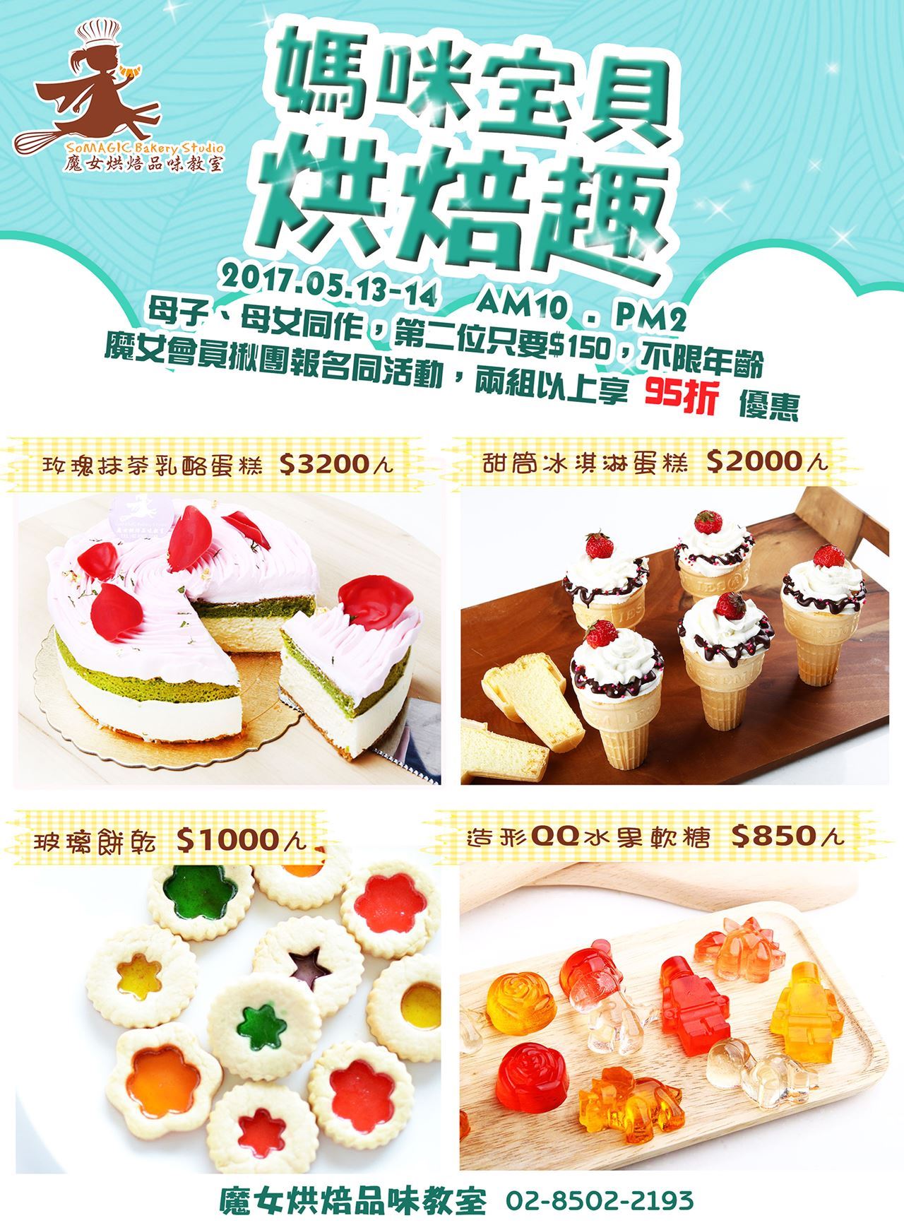 為了感謝媽媽多年來的辛勞,魔女今年準備許多熱門豐富的課程,讓媽媽可以無壓力的體驗烘焙的樂趣~