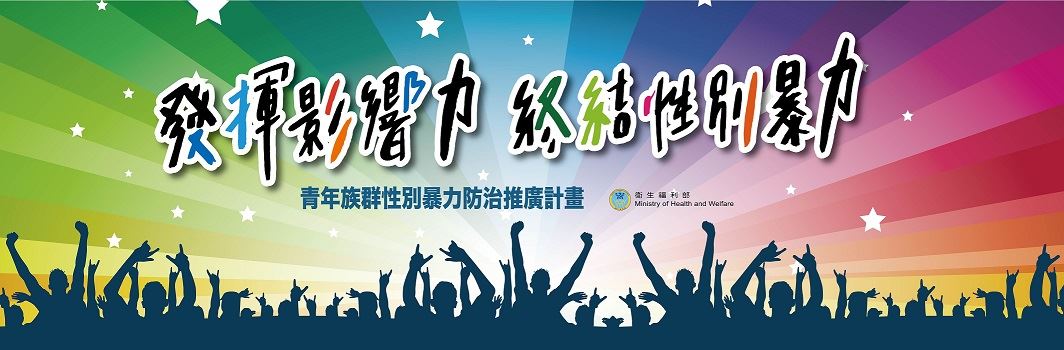 衛生福利部舉辦性別暴力防治推廣計畫,利用競賽的方式邀請青年朋友一同集思廣益,並透過網路社群及新媒體,以強化青年族群對性別暴力防治議題的關注。