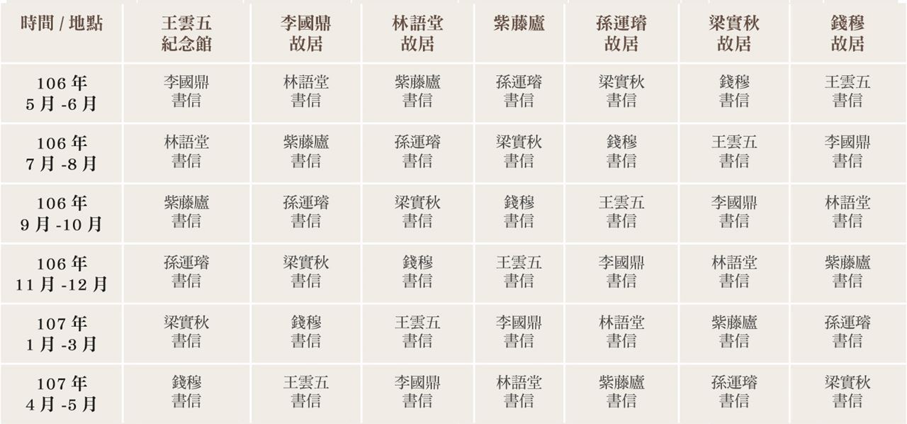 展覽地點|採七處名人故居巡迴展覽方式,詳如下表